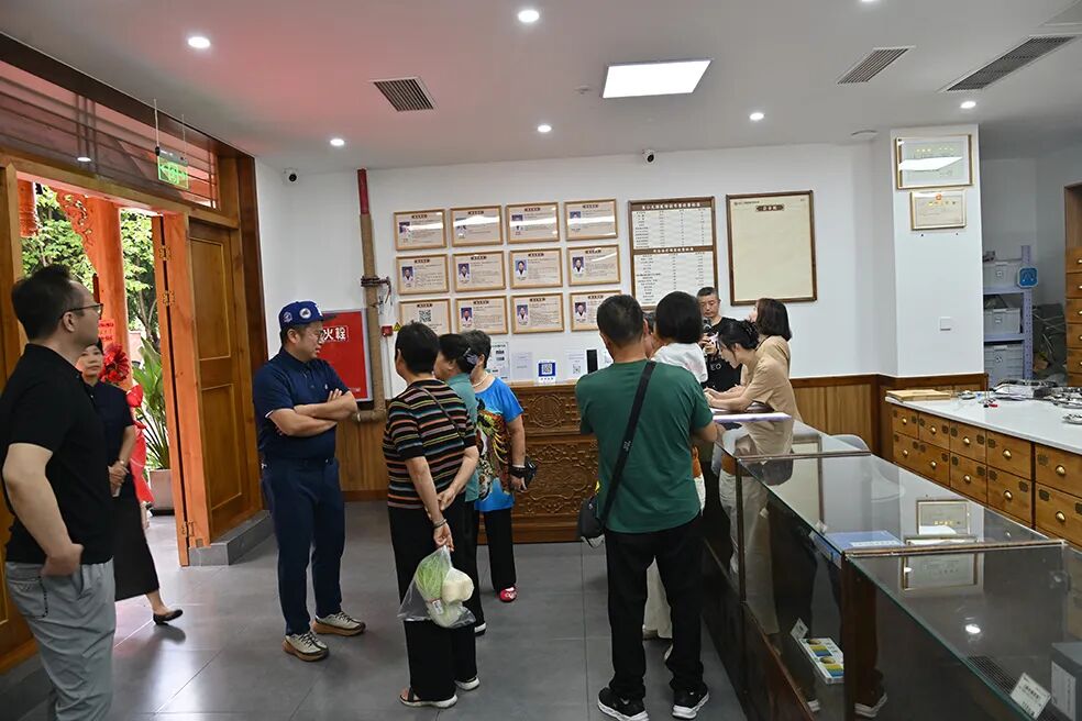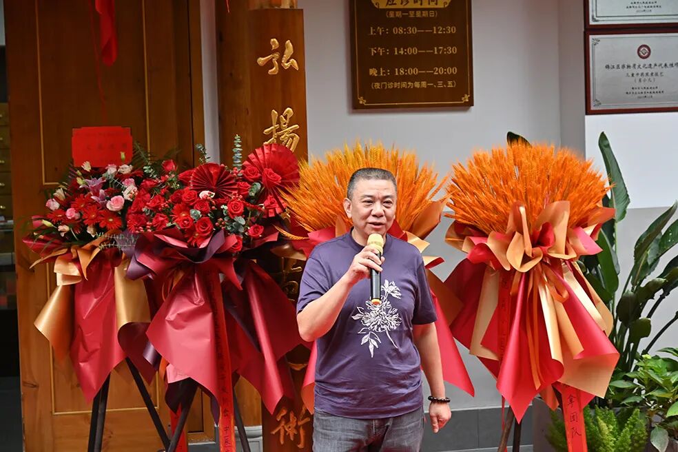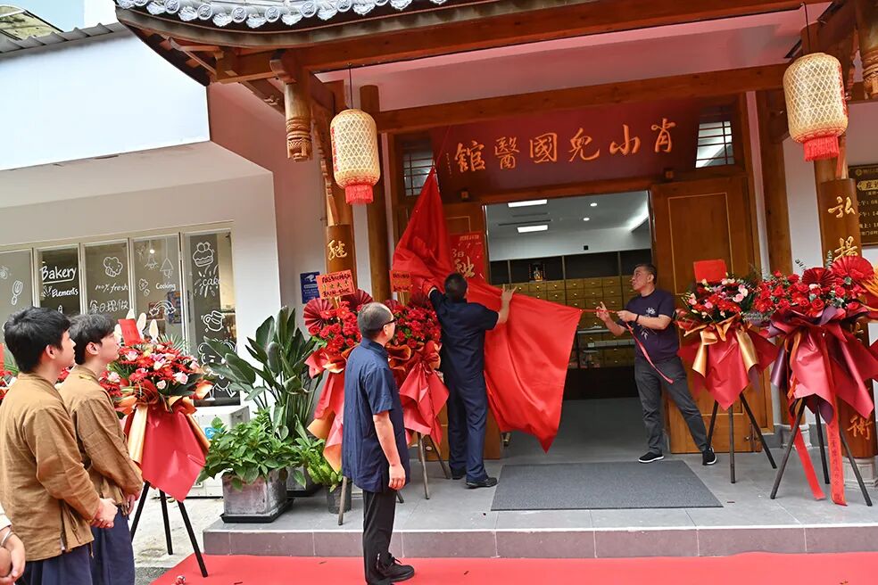 中国民间中医医药研究开发协会中医膏摩疗法分会副会长、全国名老中医张素芳学术传承人周奕琼女士;中华刃针学会常务理事,中华针刀医师学会常务理事,全国正骨整脊学术委员会专家委员杨二玲先生;艾推名家联合创始人、中国民间中医医药研究开发协会中医膏摩疗法分会常务副会长姜亦胜;川派名中医肖正安中医流派第二代传承人肖劲松、肖量、王珊、刘麒等共同为新馆剪彩和揭幕。